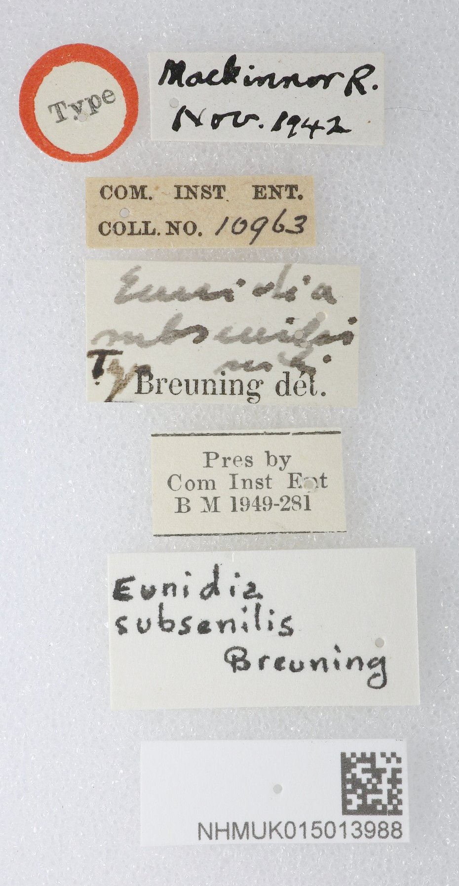 Eunidia subsenilis Breuning Specimen Type: holotype Institution: BMNH British Museum Natural History, London, UK Photographer: Keita Matsumoto Collection Location: Mackinnon Road, Kenya 79574