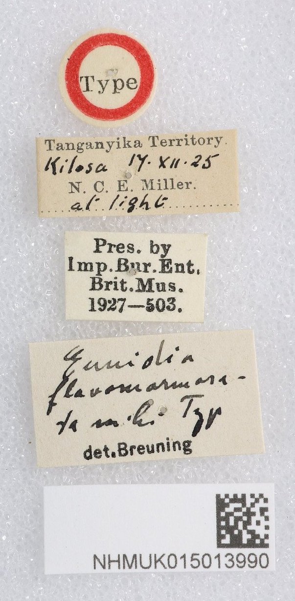 Eunidia subnebulosa Breuning Specimen Type: holotype Institution: NHMB Naturhistorisches Museum, Basel, Switzerland Photographer: C. Germann & I. Zurcher Collection Location: Kruger NP, Skukuzu, Transvaal, South Africa 90149