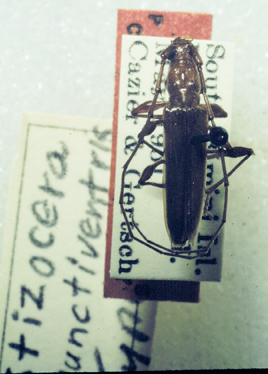 Stizocera punctiventris Cazier & Lacey Specimen Type: holotype Sex: m Institution: AMNH American Museum of Natural History, New York, NY, USA Photographer: John Chemsak Collection Location: South Bimini Island, Bahama Islands, West Indies 18607