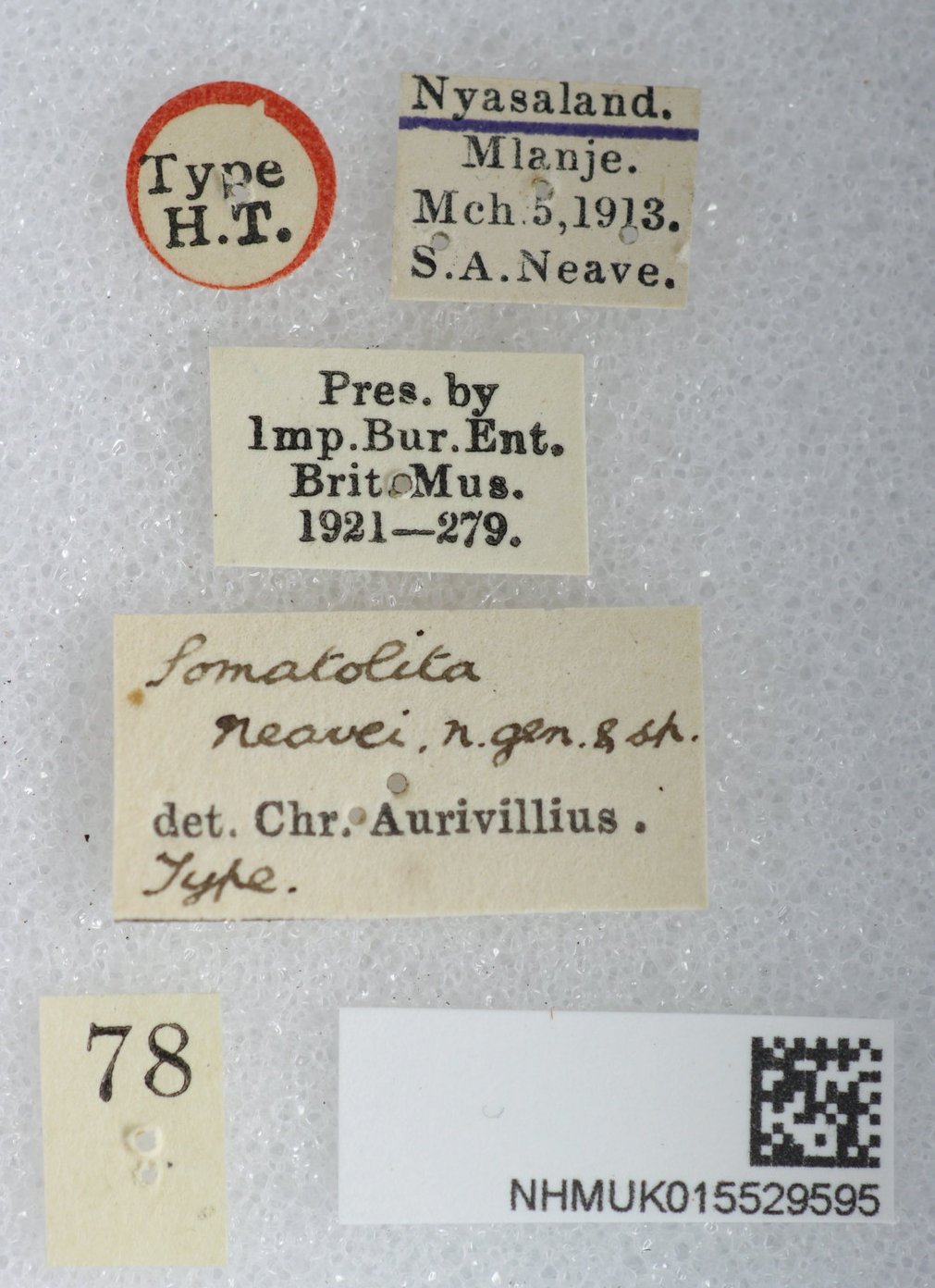 Specimen Type: holotype Institution: BMNH British Museum Natural History, London, UK Photographer: Keita Matsumoto Collection Location: Mlanje, Nyassaland, Malawi 91507