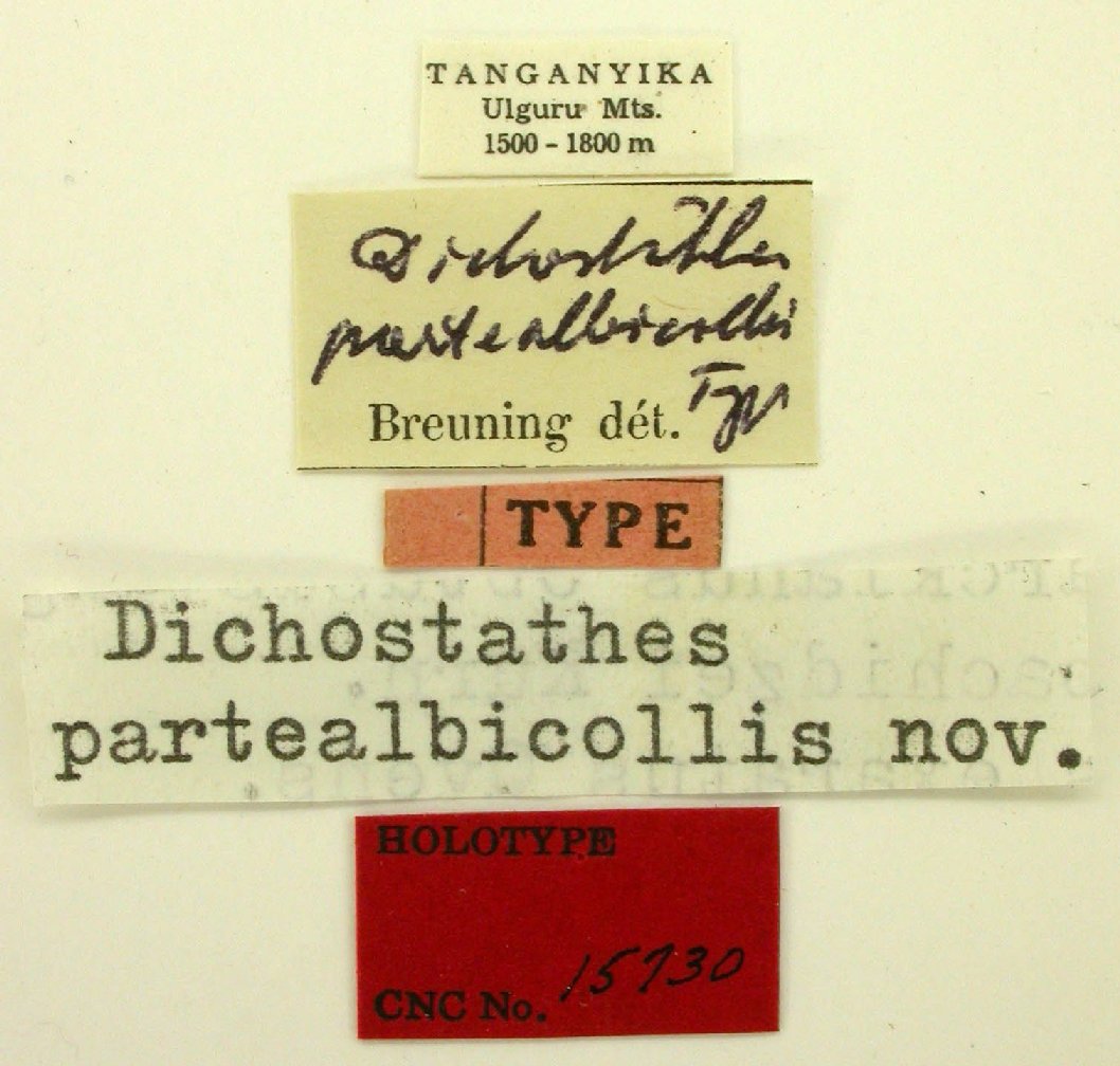 Dichostathes partealbicollis Breuning Specimen Type: holotype Sex: m Institution: CNC Canadian National Collection of Insects, Ottawa, Ontario, Canada Photographer: Serge Laplante, photograph and data Determiner: Copyright of