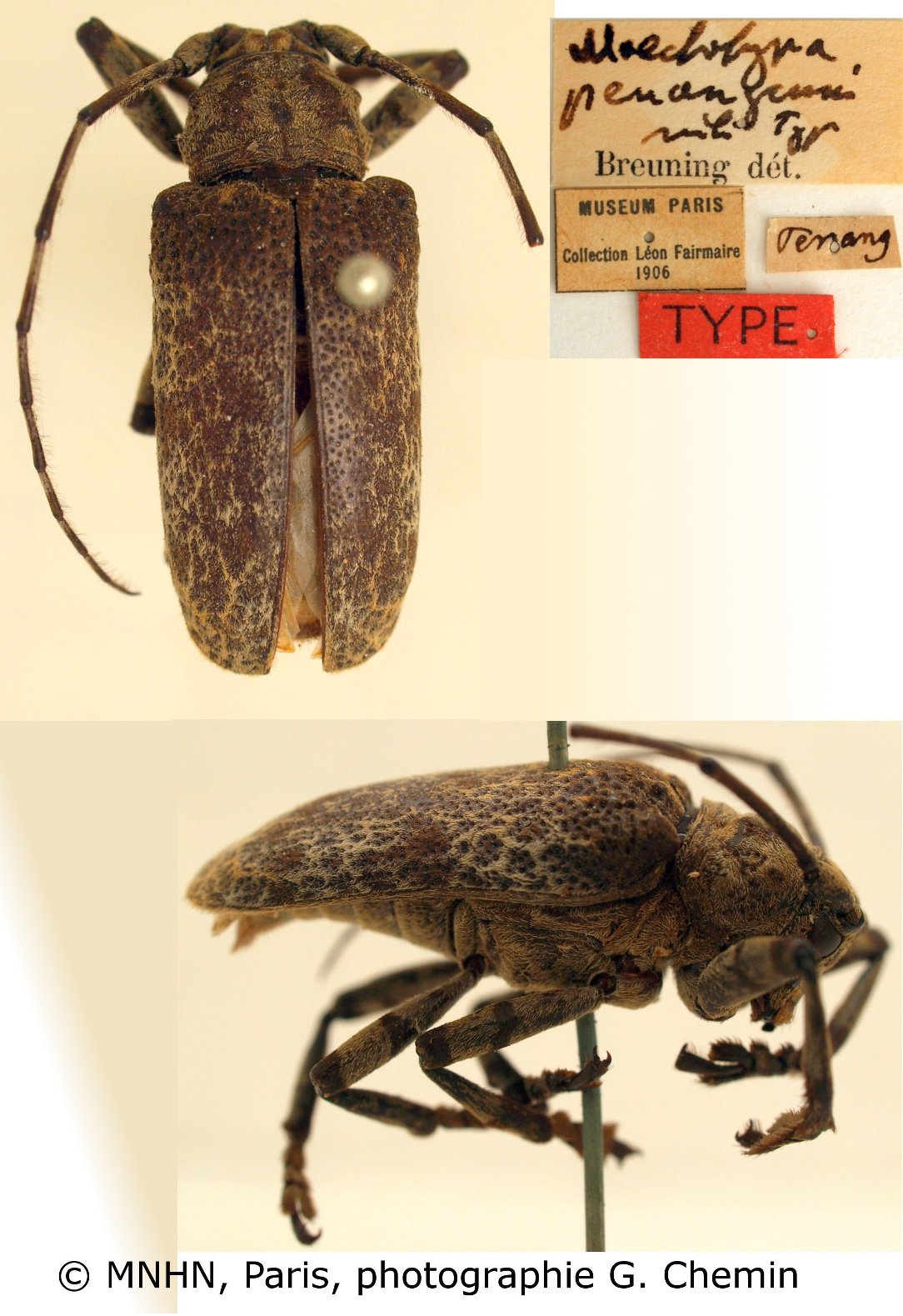 Specimen Type: holotype © MNHN Institution: MNHN Museum of Natural History Paris, France Photographer: Gerard Chemin, Cerambycoidea Forum Collection Location: Penang Malaysia 101180