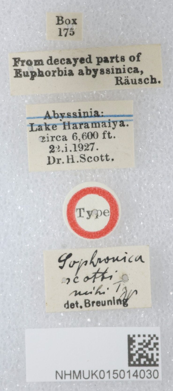 Specimen Type: holotype Institution: BMNH British Museum Natural History, London, UK Photographer: Keita Matsumoto Collection Location: Djem-djem Forest, Ethiopia 79639