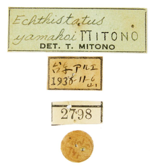 Echthistatus yamahoi Mitono Specimen Type: holotype Sex: m Institution: TARI Taiwan Agriculture Research Institute, Taichung Photographer: Chi-Feng Lee Collection Location: Aroe, Taito-shu, Taiwan 71138
