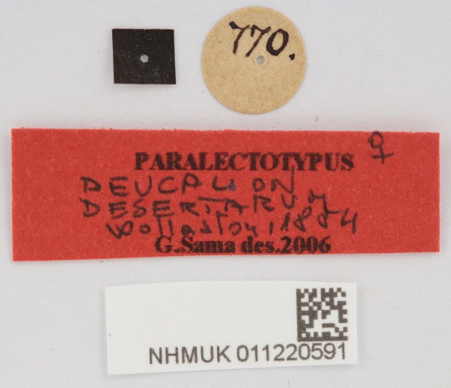 Deucalion desertarum Wollaston Specimen Type: paralectotype Institution: BMNH British Museum Natural History, London, UK Photographer: Keita Matsumoto Collection Location: Isla Deserta Grande, Madeira, Portugal 65858