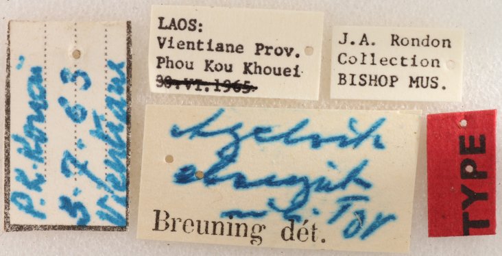 Specimen Type: holotype Sex: m Institution: BPBM Bernice P. Bishop Museum, Honolulu, Hawaii, USA Photographer: Nobuo Ohbayashi Collection Location: Phou Khao Khoay, Vientiane, Laos 43163