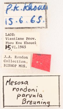 Mesosa rondoni parvula Breuning Institution: BPBM Bernice P. Bishop Museum, Honolulu, Hawaii, USA Photographer: Jim Cope 52701