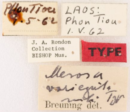 Mesosa variegata Breuning Specimen Type: holotype Sex: m Institution: BPBM Bernice P. Bishop Museum, Honolulu, Hawaii, USA Photographer: Nobuo Ohbayashi Collection Location: Thakhet, Laos 44694
