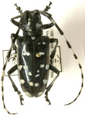 Anoplophora alboapicalis Chiang Specimen Type: holotype Sex: m Institution: BPBM Bernice P. Bishop Museum, Honolulu, Hawaii, USA Photographer: Nobuo Ohbayashi Collection Location: Shatang, Kwangsi, China 43179