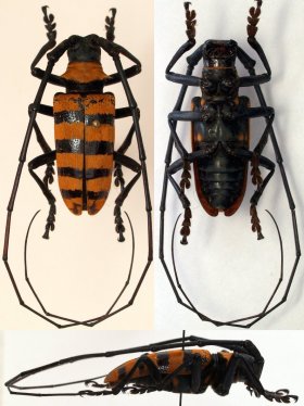 Monochamus doleschali Redtenbacher Specimen Type: holotype Sex: m Institution: NMW Naturhistorisches Museum, Wien, Austria Photographer: Herbert Schmid Collection Location: Amboina, Molucca Islands 53806