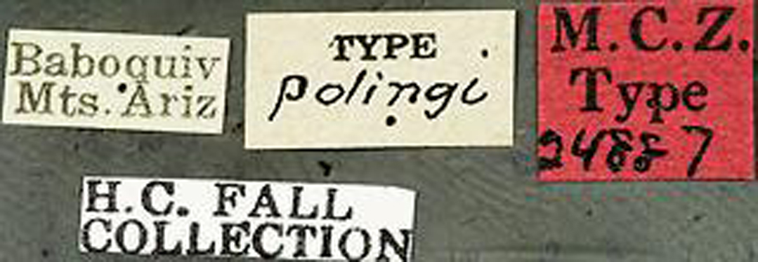 Ibidion polingi Fall Specimen Type: holotype Sex: f Institution: MCZ Museum of Comparative Zoology, Harvard University, Cambridge, MA, USA Photographer: P. Naskrecki, P. Perkins, and B. Farrell Collection Location: Baboquivari Mountains, Arizona 1356