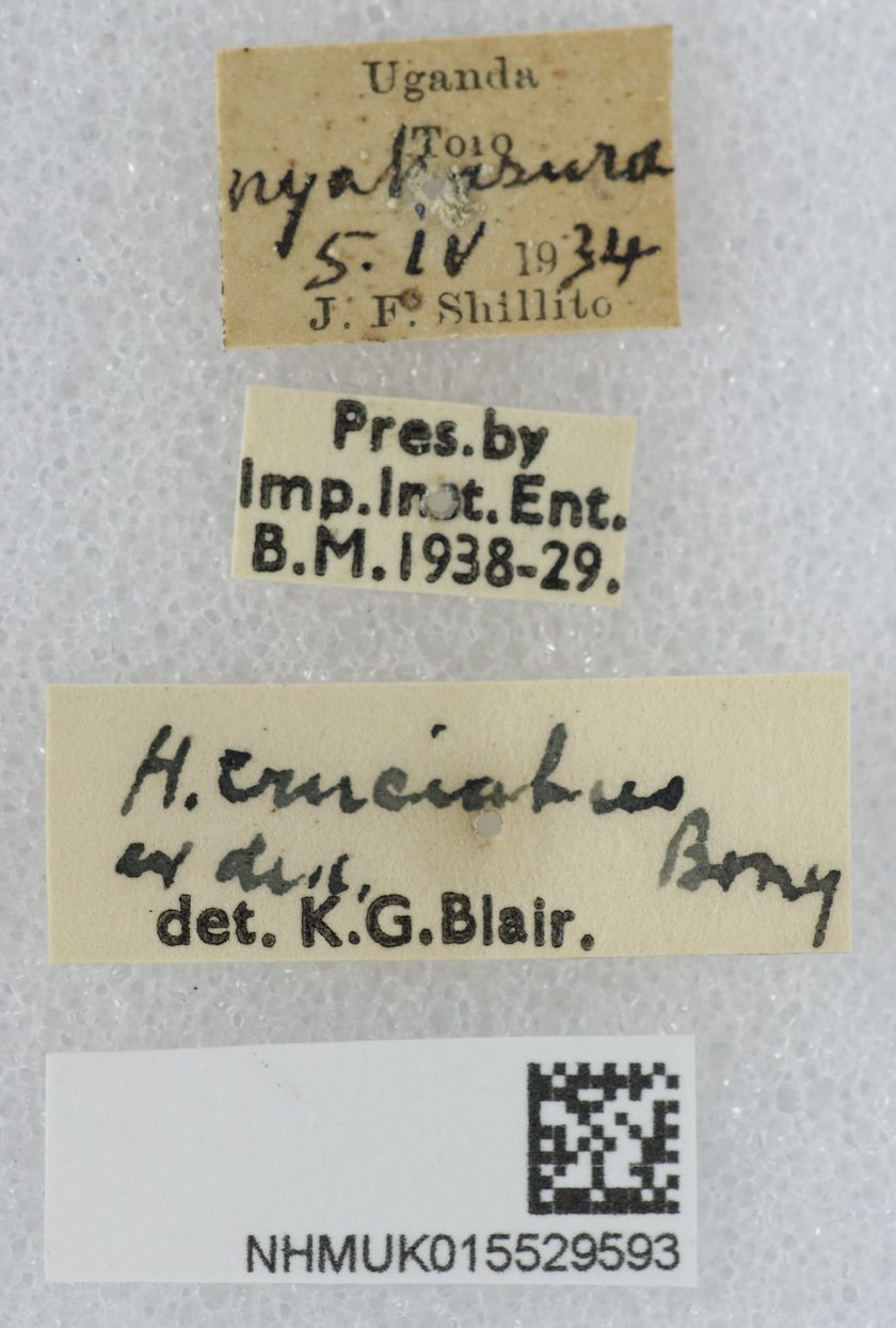 Specimen Type: holotype? Sex: f Institution: BMNH British Museum Natural History, London, UK Photographer: Keita Matsumoto Collection Location: Toro, Uganda 91041