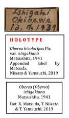 Oberea bicoloripes var ishigakiana Matsushita Specimen Type: holotype Sex: f Institution: NMST National Science Museum (Nat. Hist.), Tokyo, Japan Photographer: Tatsuya Niisato Collection Location: Ishigaki-shima, Ryuku Islands, Japan 71501