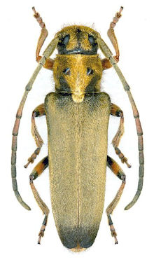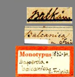 Saperda balcanica Frivaldsky Specimen Type: holotype Institution: MTMB Magyar Természettudományi Műzeum, Budapest, Hungary Photographer: A Grabant Collection Location: Szlivno, Balkans, Bosnia-Herzegovina 74374