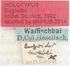 Eugoides kolbei Schmidt Specimen Type: holotype Sex: f Institution: ZMHB Museum für Naturkunde der Humboldt-Universität, Berlin, Germany Photographer: Pierre Juhel Collection Location: Walfischbal, Namibia 79019