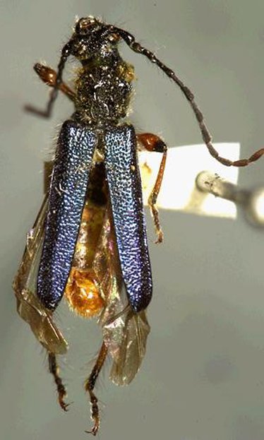 Pilema cyanipennis LeConte Specimen Type: syntype Institution: MCZ Museum of Comparative Zoology, Harvard University, Cambridge, MA, USA Photographer: P. Naskrecki, P. Perkins, and B. Farrell Collection Location: California 2502
