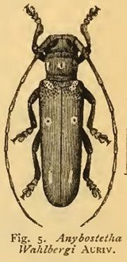 Anybostetha wahlbergi Aurivillius Specimen Type: holotype Institution: ZSM Zoologische Staatssammlung, München, Germany Determiner: Arkiv för Zoologi, Uppsala Collection Location: Lac N' Gami, Botswana 45812