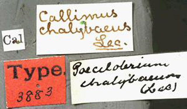 Callimus chalybaeus LeConte Specimen Type: syntype Sex: m Institution: MCZ Museum of Comparative Zoology, Harvard University, Cambridge, MA, USA Photographer: P. Naskrecki, P. Perkins, and B. Farrell Collection Location: California 589