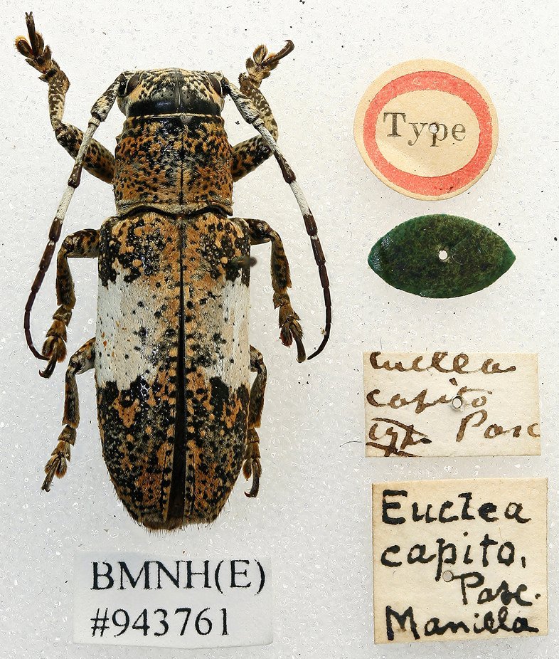 Euclea capito Pascoe Specimen Type: holotype Institution: BMNH British Museum Natural History, London, UK Photographer: Keita Matsumoto Collection Location: Manilla, Luzon, Philippines 65865