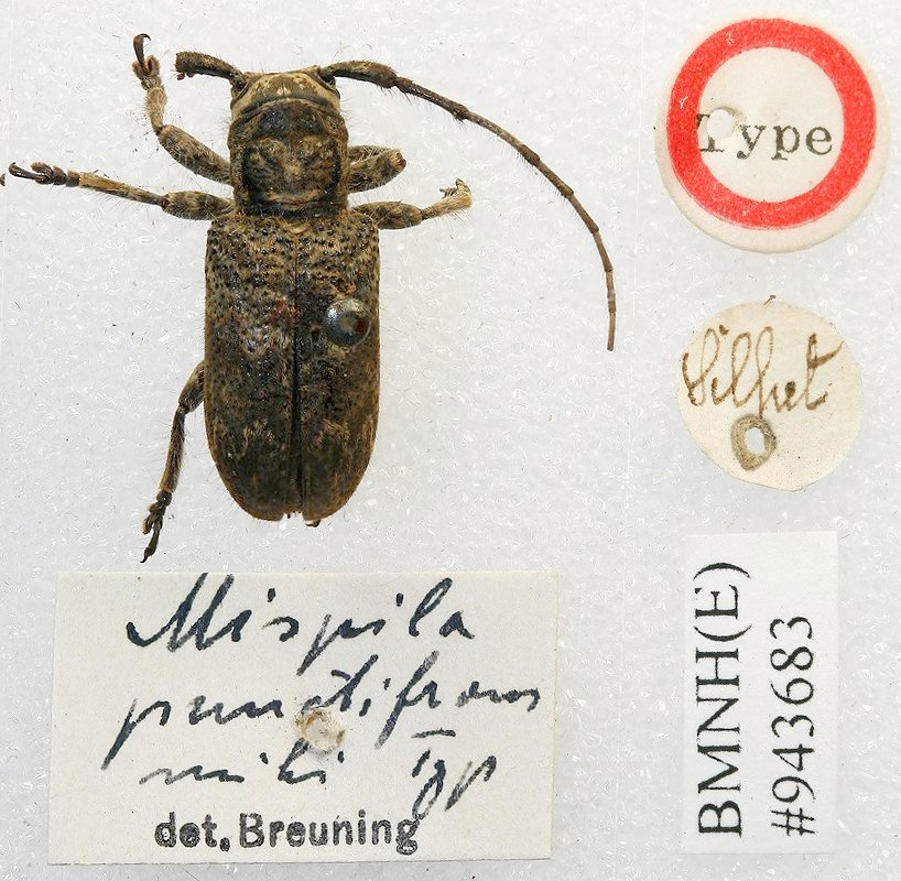 Mispila punctifrons Breuning Specimen Type: holotype Sex: f Institution: BMNH British Museum Natural History, London, UK Photographer: Keita Matsumoto Collection Location: Sylhet, Chittagong, Bangladesh 77994