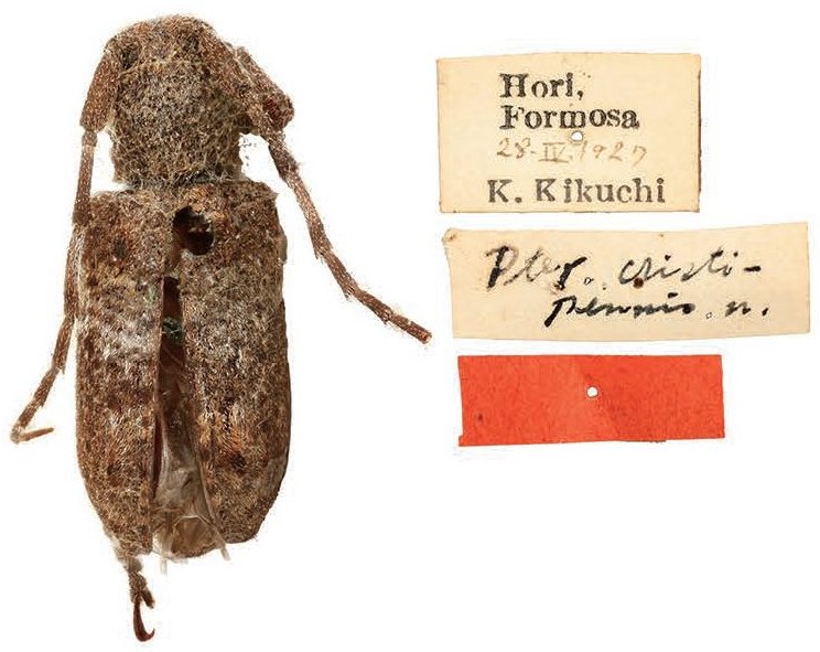 Pterolophia cristipennis Matsushita Specimen Type: syntype Sex: f Institution: EMHU Entomological Museum, Hokkaido University, Sapporo, Japan Photographer: Junsaku Harada Collection Location: Hori, Taiwan 79755