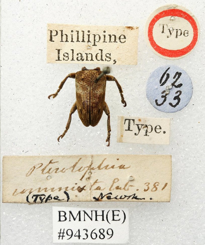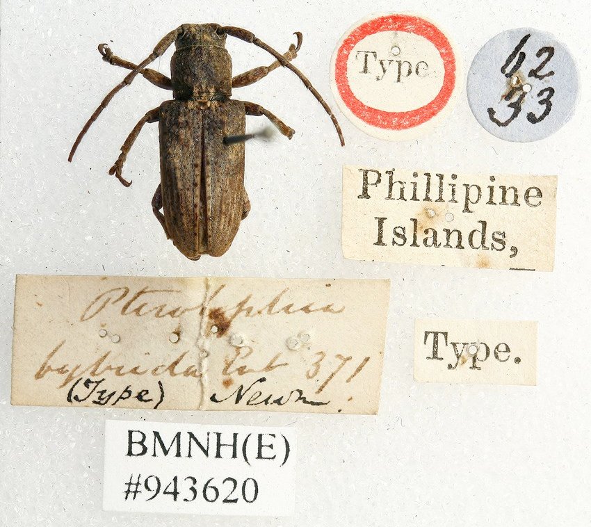 Pterolophia commixta Newman Specimen Type: holotype Institution: BMNH British Museum Natural History, London, UK Photographer: Keita Matsumoto Collection Location: Manilla, Luzon, Philippines 65981