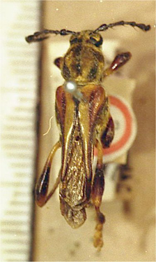 Necydalis aurulenta Kirby Specimen Type: holotype Institution: BMNH British Museum Natural History, London, UK Photographer: Larry G. Bezark Collection Location: Brazil 47085