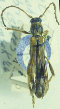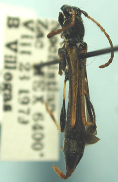 Acyphoderes cribricollis Bates Specimen Type: lectotype Sex: m Institution: BMNH British Museum Natural History, London, UK Photographer: Henry Hespenheide Collection Location: Villa Coronas (autrefois Ventanas), Durango, Mexico 14985