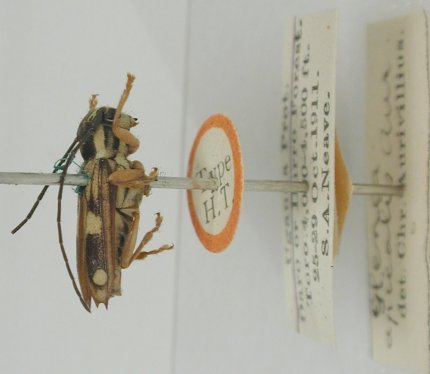 Glenea apicalis Aurivillius Specimen Type: holotype Institution: BMNH British Museum Natural History, London, UK Photographer: Larry G. Bezark Collection Location: Old Calabar, Nigeria 47609