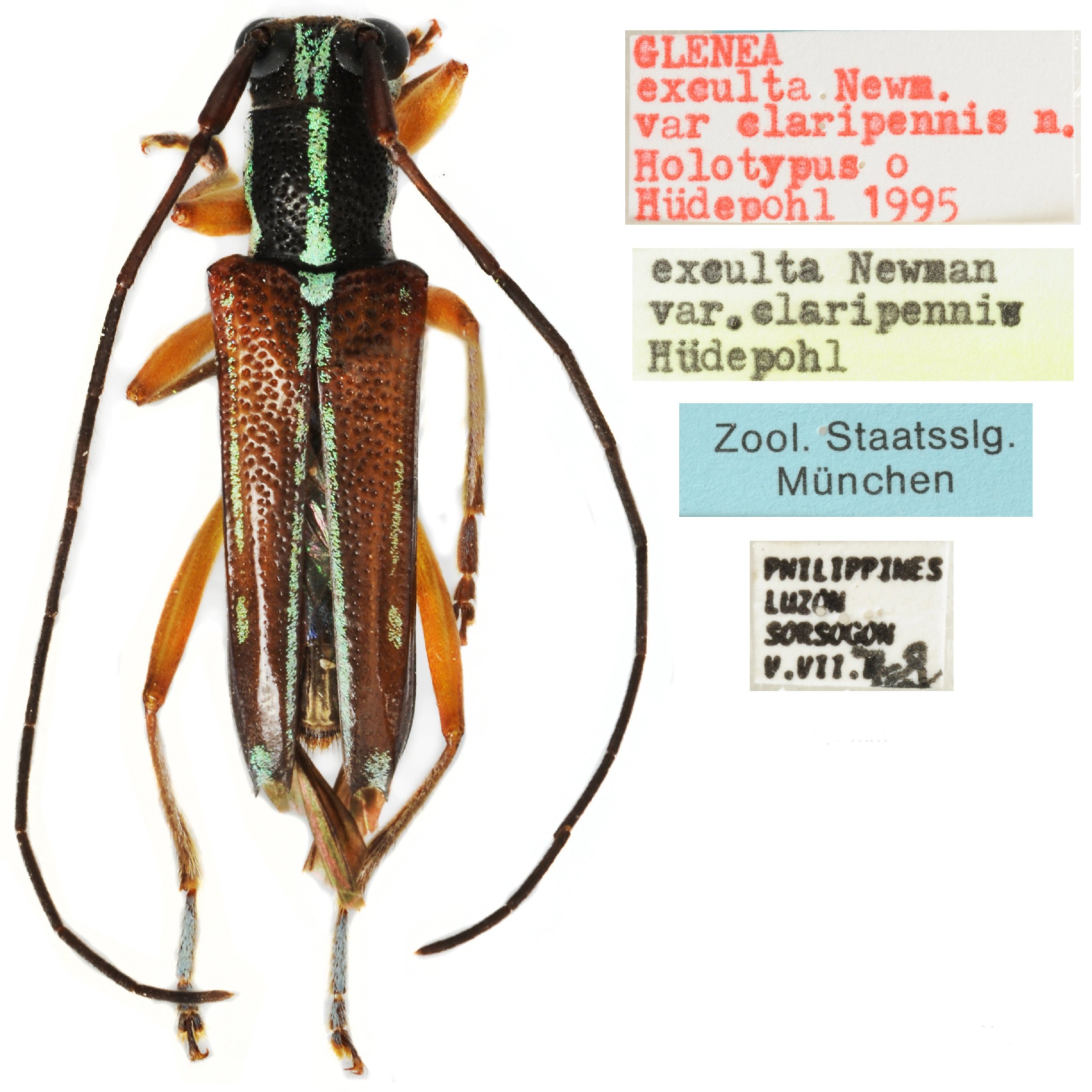 Glenea exculta claripennis Huedepohl Specimen Type: holotype Sex: m Institution: ZSM Zoologische Staatssammlung, München, Germany Photographer: Roman Hergovits Collection Location: Sorsogon, Luzon Island, Philippines 78451