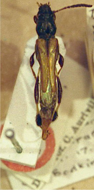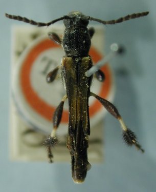 Odontocera basalis Aurivillius Specimen Type: syntype Sex: f Institution: BMNH British Museum Natural History, London, UK Photographer: Henry Hespenheide Collection Location: Demerara River, Pinland of Canaan, E. B., French Guiana 17656