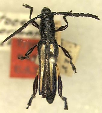 Odontocera rugicollis Bates Specimen Type: holotype Institution: BMNH British Museum Natural History, London, UK Photographer: Henry Hespenheide Collection Location: El Zapote, Escuintla, Guatemala 17693