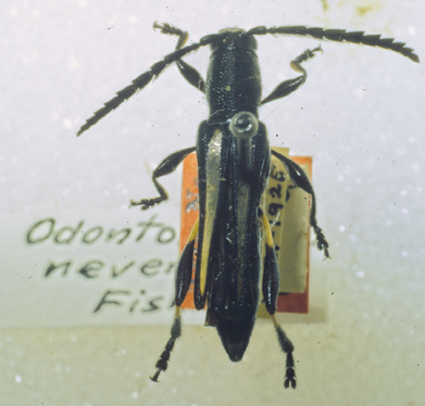 Odontocera nevermanni Fisher Specimen Type: holotype Sex: f Institution: NMNH United States National Museum, Washington, DC, USA Photographer: Steve Lingafelter Collection Location: Hamburg Farm (along the Reventazón River), Limon Plain, Costa Rica 10984