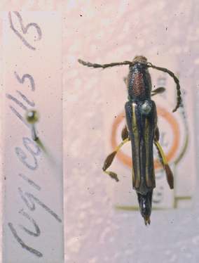 Odontocera rugicollis Bates Specimen Type: holotype Institution: BMNH British Museum Natural History, London, UK Photographer: John Chemsak Collection Location: El Zapote, Escuintla, Guatemala 17694