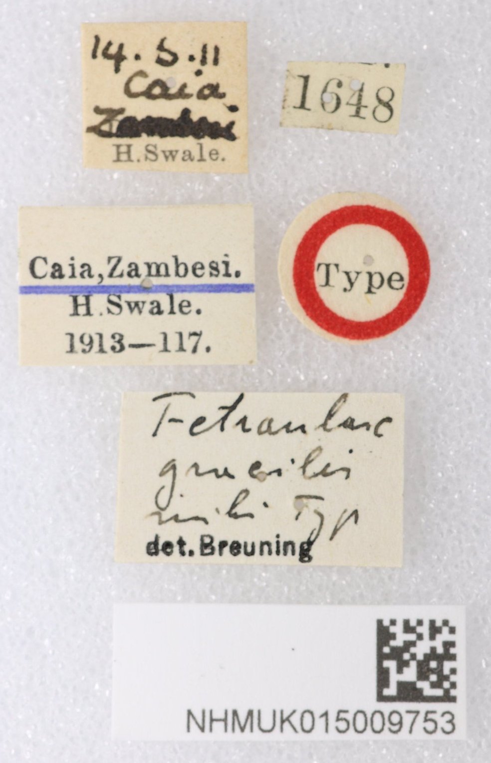 Specimen Type: holotype Institution: BMNH British Museum Natural History, London, UK Photographer: Keita Matsumoto Collection Location: Caia, Zambeze, Mozambique 78969