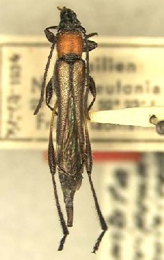 Ommata brevipennis sanguinicollis Fisher Specimen Type: holotype Sex: f Institution: NMNH United States National Museum, Washington, DC, USA Photographer: Steve Lingafelter Collection Location: Nova Teutonia, Santa Catarina, Brazil 11091