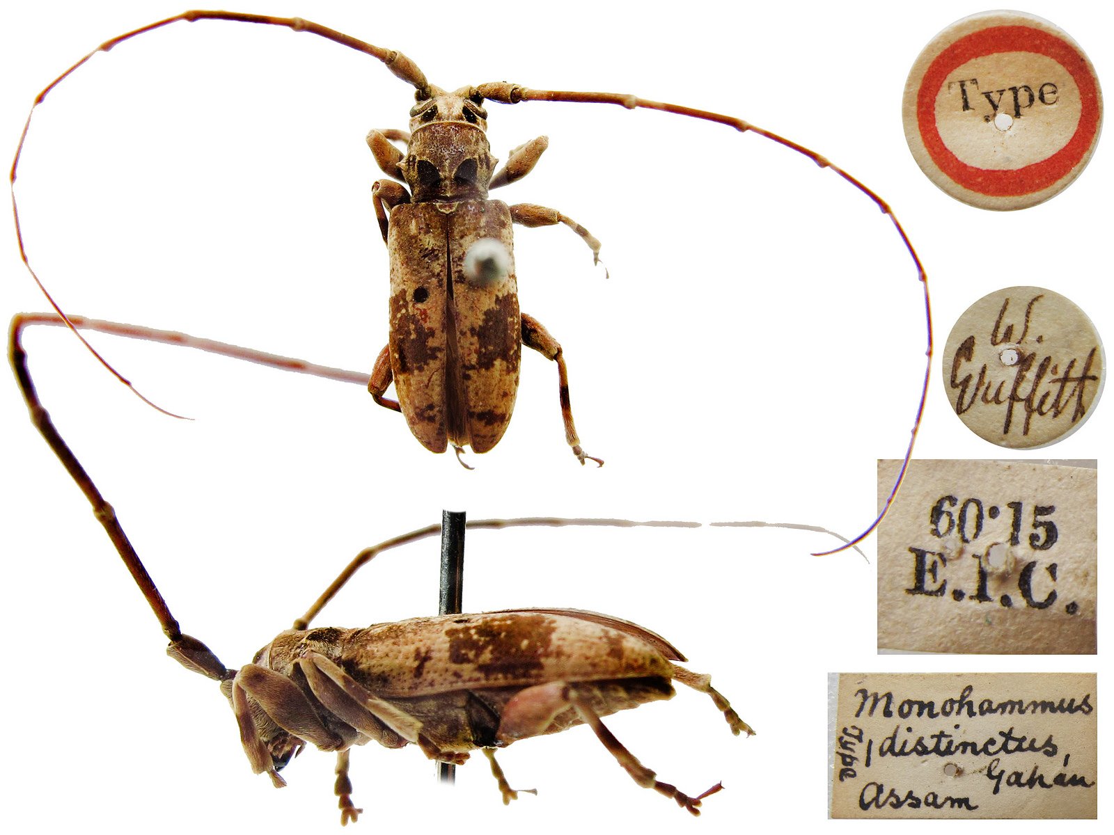 Monohammus distinctus Gahan Specimen Type: holotype Sex: m Institution: BMNH British Museum Natural History, London, UK Photographer: Helena Maratheftis Collection Location: Assam, India 65904