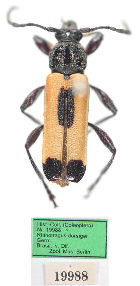 Rhinotragus dorsiger marginatus Perty Specimen Type: holoype Sex: m Institution: ZSM Zoologische Staatssammlung, München, Germany Photographer: Steve Lingafelter Collection Location: Sao Paolo, Brazil 29822