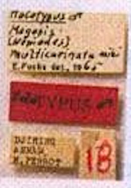 Megopis multicarinatus Fuchs Specimen Type: holotype Sex: m Institution: MNHN Museum of Natural History Paris, France Determiner: Elytra, Tokyo Collection Location: Dijiring, Annam, Vietnam 52302