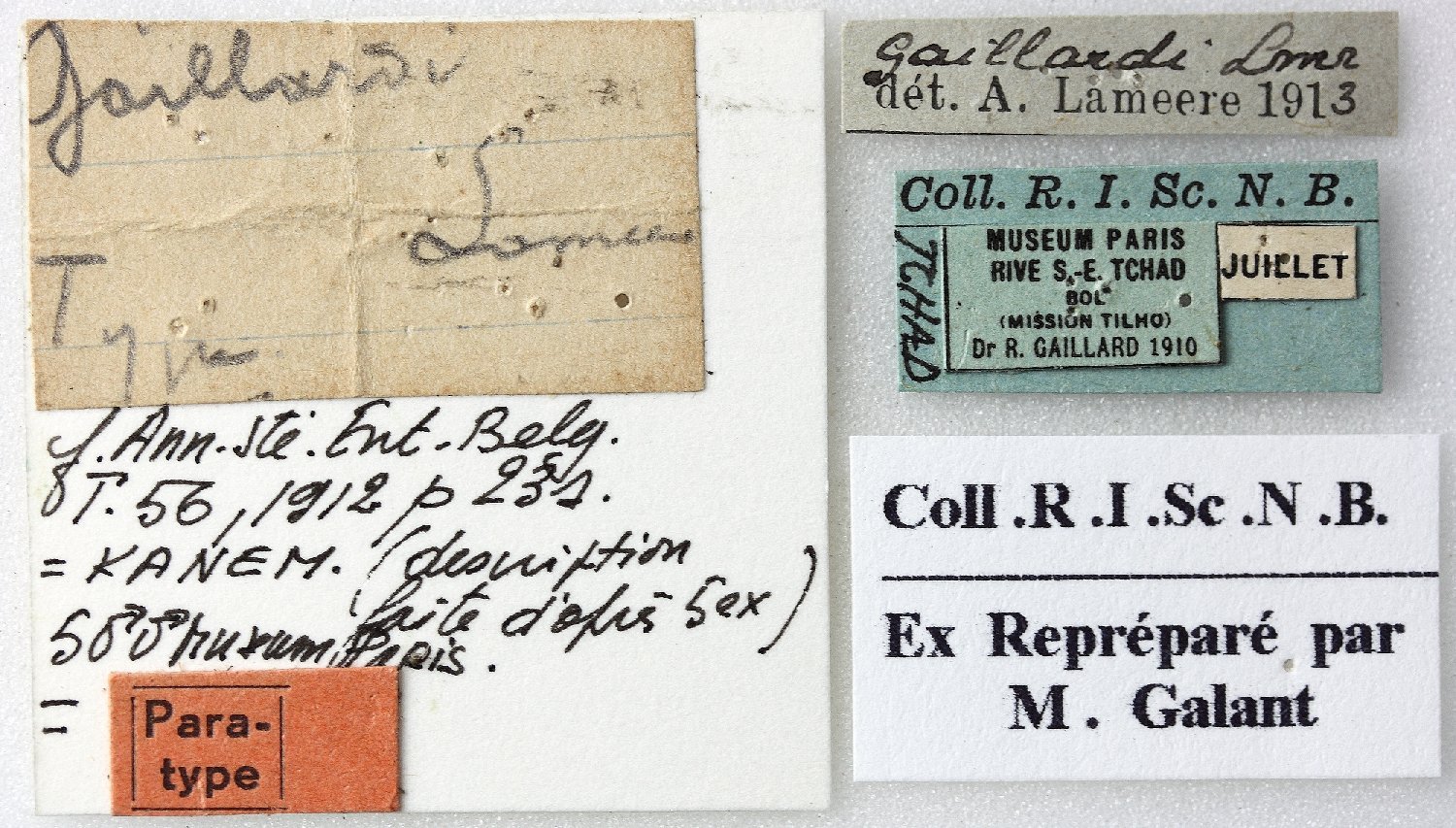 Prionus gaillardi Lameere Specimen Type: paratype Sex: m Institution: RBINS Royal Belgian Institute of Natural Sciences, Brussels, Belgium Photographer: J Pirkl Collection Location: Chad 65724