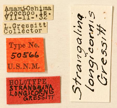 Strangalina longicorne Gressitt Specimen Type: holotype Sex: f Institution: NMNH United States National Museum, Washington, DC, USA Photographer: Steve Lingafelter Collection Location: Gusuku, Amami-Oshima Island, Ryukyu Islands, Japan 62655