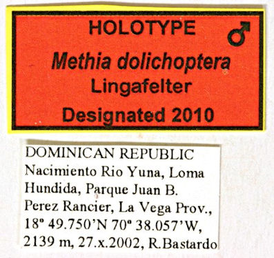 Specimen Type: holotype Sex: m Institution: NMNH United States National Museum, Washington, DC, USA Photographer: Steve Lingafelter Collection Location: Nacimiento, Rio Yuna, Dominican Republic 30095