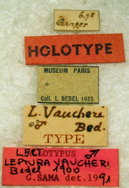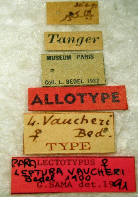 Leptura vaucheri Bedel Specimen Type: lectotype Sex: m Institution: MNHN Museum of Natural History Paris, France Photographer: Sergei Troccoli Collection Location: Djebil Kebir, Morocco 75130
