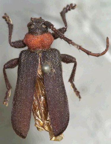 Euryoptera sanguinicollis Horn Specimen Type: holotype Institution: MCZ Museum of Comparative Zoology, Harvard University, Cambridge, MA, USA Photographer: P. Naskrecki, P. Perkins, and B. Farrell 1194