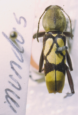Clytus mundus Chevrolat Specimen Type: holotype Institution: BMNH British Museum Natural History, London, UK Photographer: Henry Hespenheide Collection Location: Izabal, Guatemala 15667