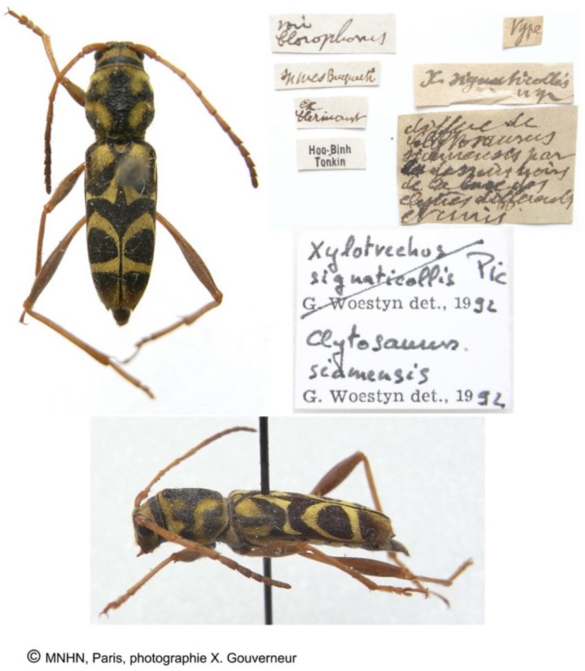 Xylotrechus signaticollis Pic Specimen Type: holotype © MNHN Institution: MNHN Museum of Natural History Paris, France Photographer: Xavier Gouverneur Collection Location: Tonkin, Vietnam 77322