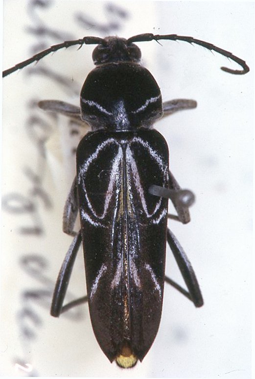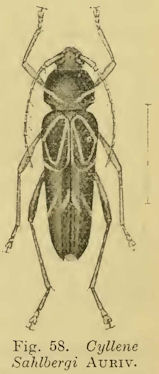 Cyllene sahlbergi Aurivillius Specimen Type: holotype Institution: NHRS Naturhistoriska Riksmuseet, Stockholm, Sweden Photographer: JS Moure Collection Location: Brazil 100876