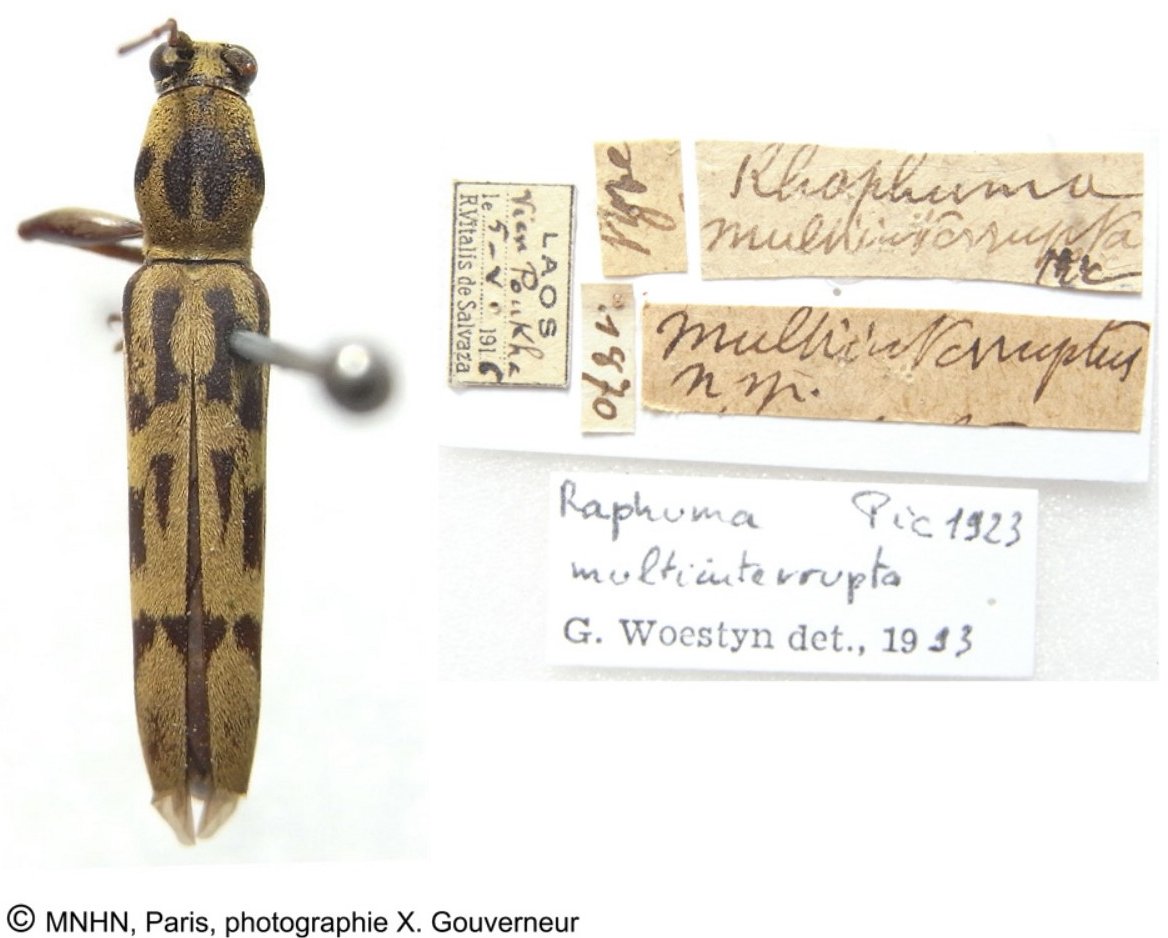 Rhaphuma multiinterrupta Pic Specimen Type: holotype © MNHN Institution: MNHN Museum of Natural History Paris, France Photographer: Xavier Gouverneur Collection Location: Laos 77280