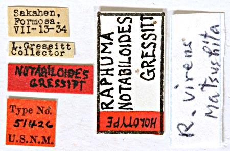 Raphuma notabiloides Gressitt Specimen Type: holotype Sex: m Institution: NMNH United States National Museum, Washington, DC, USA Photographer: Steve Lingafelter Collection Location: Sakahen, SW Karenko, eastern Taiwan 60026
