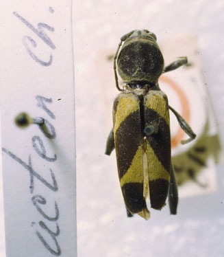 Clytus acteon Chevrolat Specimen Type: holotype Institution: BMNH British Museum Natural History, London, UK Photographer: JS Moure Collection Location: Cordoba, Veracruz, Mexico 100549